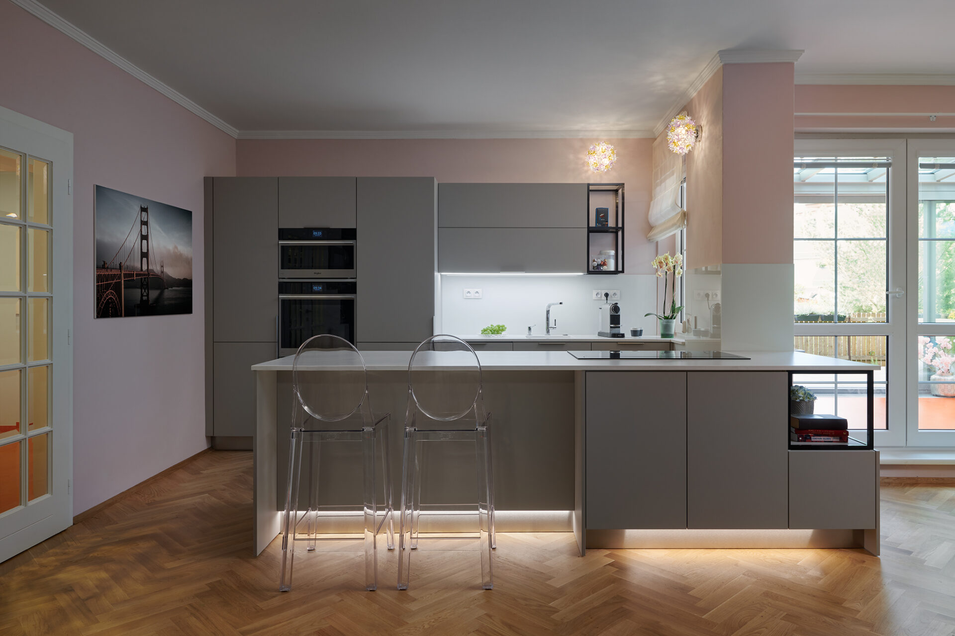 Následně se zaměříme na zpracování návrhu, ve kterém si především kuchyni rozvrhneme na jednotlivé zóny, navrhneme logické umístění spotřebičů tak, aby kuchyň byla uživatelsky co nejpříjemnější.